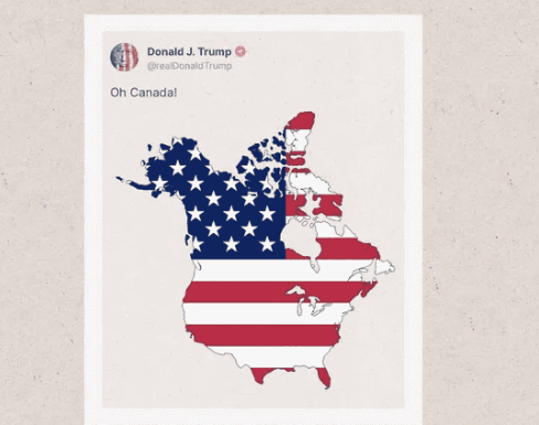 وفي منشور على منصة “تروث سوشيال” علق ترامب على إحدى الصور التي تظهر الخريطة الموحدة لأميركا وجارتها الشمالية معا تحت العلم الأميركي قائلا: “أوه كندا”.