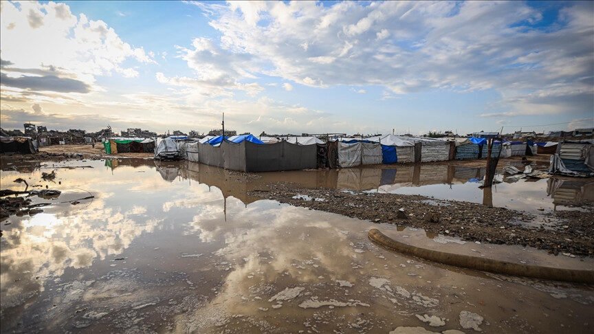وأوضح الفلسطيني خالد عبد العزيز أنه استيقظ مع أسرته على رياح شديدة اقتلعت خيمتهم وتسببت في تطاير جميع مقتنياتهم، مضيفاً: “نحن الآن في العراء تحت المطر، ولا يوجد مكان نلجأ إليه”.