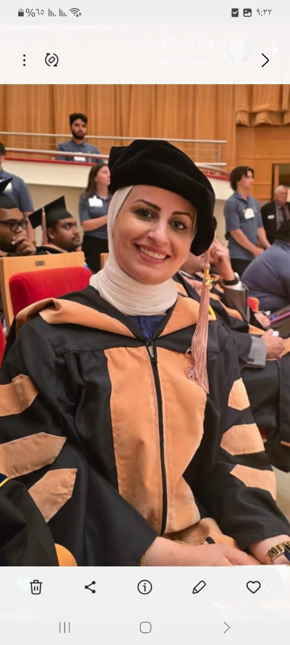 يتقدم الاعلامي مجحم العدوان , بالتهنئة لـ”شقيقته العقيد الركن هلا العدوان “, بحصولها على شهادة الدكتوراة في القيادة الاستراتيجية في ادارة