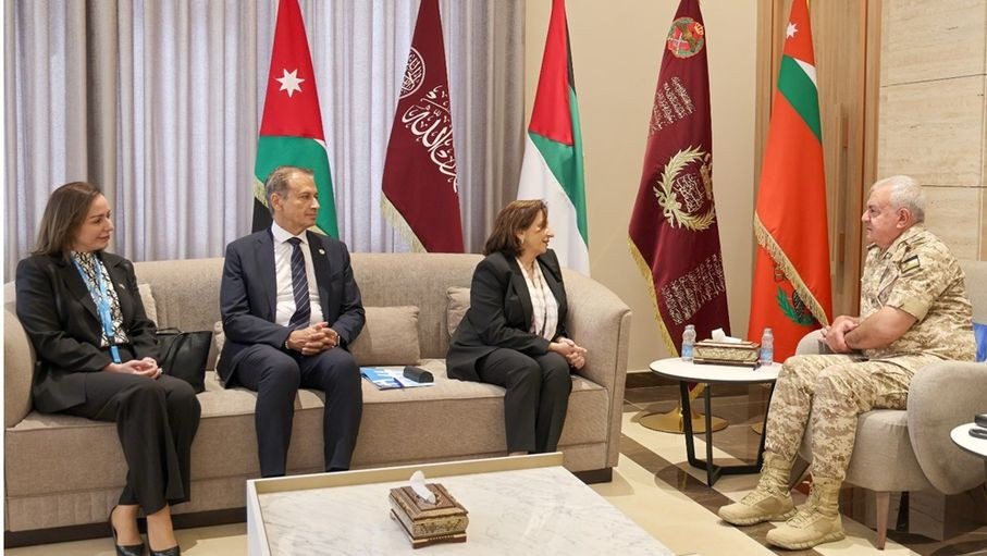 استقبل رئيس هيئة الأركان المشتركة اللواء الركن يوسف أحمد الحنيطي، اليوم الاثنين، في مكتبه بالقيادة العامة، وكيلة الأمين العام للأمم المتحدة، المديرة التنفيذية لهيئة الأمم المتحدة للمرأة الدكتورة سيما بحوث والوفد المرافق لها.