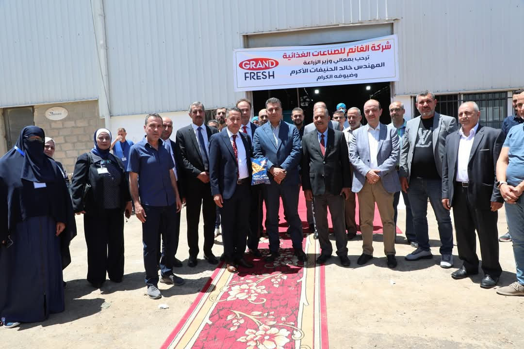 افتتح وزير الزراعة المهندس خالد الحنيفات مساء اليوم بحضور مدير عام شركة المدن الصناعية الأردنية السيد عمر جويعد ومدير مؤسسة الاقراض الزراعي نائب رئيس غرفة الصناعة محمد الجيطان ومتصرف الموقر مصطفى العبادي وعددا من نواب ووجهاء الموقر ، مصنع شركة الغانم لصناعة وتجارة المواد الغذائية في مدينة الموقر الصناعية والذي يعمل على إنتاج البطاطا النصف مقلية ، يذكر ان المصنع منشأ على مساحة 656 متر مربع وهو من المصانع المدعومة من وزارة الزراعة ضمن مشروع تحفيز الصناعات الغذائية في المدن الصناعية والتنموية والبلديات اضافة الى تمويل من الاقراض الزراعي بمبلغ ٧٠ الف دينار ، حيث يتوقع ان يشغل المصنع 55 عاملا وعاملة .