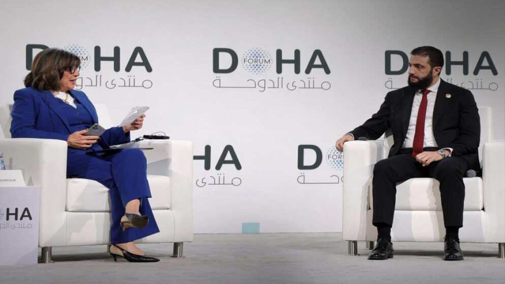 جاء ذلك في حوار أجراه مع الصحفية كريستيان أمانبور كبيرة مذيعي الشؤون الدولية في شبكة CNN التلفزيونية ونشرته وكالة الأنباء السورية (سانا)، ضمن مشاركته في منتدى الدوحة 2025 المنعقد في العاصمة القطرية تحت شعار “ترسيخ العدالة.. من الوعود إلى الواقع الملموس”، إذ شدد الشرع على أن إسرائيل تحاول الهروب من المجازر التي ترتكبها في قطاع غزة عبر تصدير الأزمات إلى دول المنطقة، موضحا أن سوريا منذ التحرير أرسلت رسائل إيجابية لإرساء دعائم الاستقرار، لكن إسرائيل قابلتها بعنف شديد، حيث شنت أكثر من ألف غارة ونفذت 400 توغل داخل الأراضي السورية.