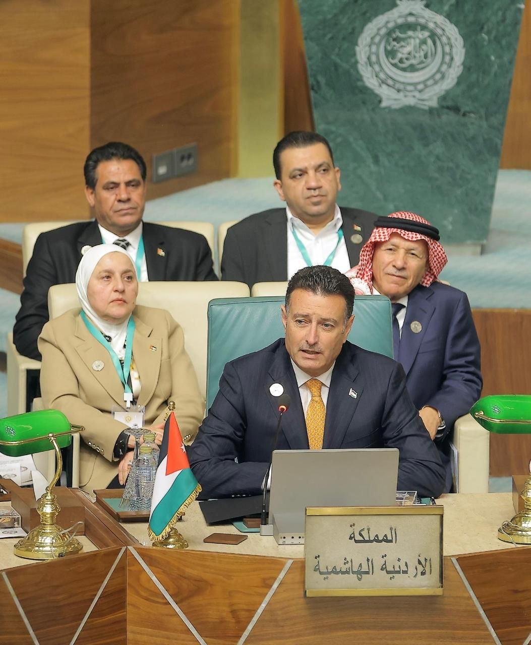 وتابع الصفدي بالقول: حللت مع إخوتي في مجلس النواب الأردني، حاملين من القلوب لكل دولة عربية شقيقة، تحية المحبة لها، قادة وبرلماناً وشعوبا، منطلقين من مبادئ أصيلة تنبت في وجدان الأردنيين جيلاً فجيلا، الراسخين في أعماق التاريخ بصادق العهد مع قضايا الأمة، الصامدين خلف ملوك بني هاشم في حمل أمانة الوصاية على المقدسات الإسلامية والمسيحية في قدس العروبة، الثابتين خلف مواقف الحق التي قالها بصوت ضمير الأمة جلالة الملك عبد الله الثاني: كلا للتهجير، كلا للتوطين، كلا للوطن البديل.