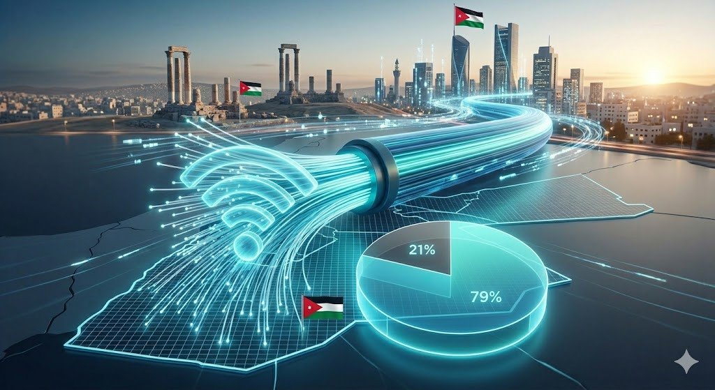أظهرت بيانات هيئة تنظيم قطاع الاتصالات المنشورة على موقعها الإلكتروني اليوم الخميس، في تقريرها الإحصائي للربع الرابع من العام الماضي لقطاع الاتصالات، أن تقنية الفايبر استحوذت على 79% من اشتراكات الإنترنت الثابت عريض النطاق في الأردن.