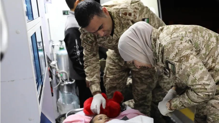 أخلت القوات المسلحة الأردنية، الأربعاء، 4 أطفال من غزة يعانون من مرض السرطان ومرافقين لهم من عائلاتهم وعددهم 12شخصا لتلقي العلاج في الأردن، ويأتي ذلك ضمن الدفعة الثانية من الممر الطبي الأردني.