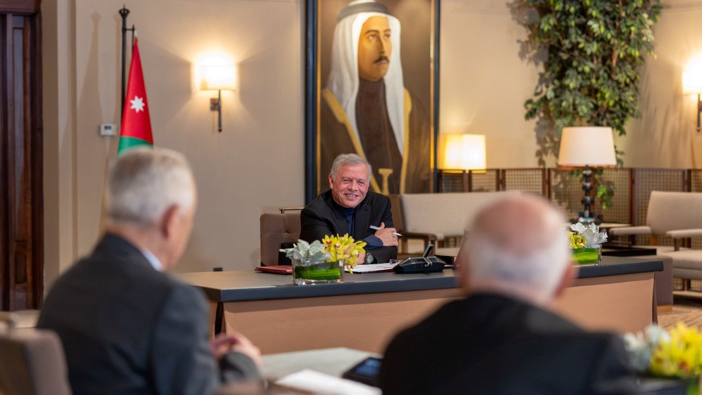 وحضر اللقاء رئيس الديوان الملكي الهاشمي يوسف حسن العيسوي، ومدير مكتب جلالة الملك، علاء البطاينة.