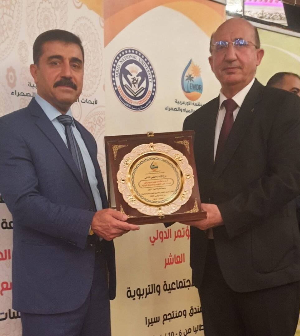 أنطاليا – نالت جامعة صلاح الدين – أربيل ممثلة بالدكتور دلشاد عزيز درويش استاذ العلوم والصحة البيئية، تكريمًا مميزًا من المنظمة الأوروعربية لأبحاث البيئة والمياه والصحراء، حيث تسلّم درع التميّز العلمي خلال فعاليات المنتدى الدولي التاسع عشر للبحث العلمي الذي انعقد في مدينة أنطاليا التركية بمشاركة أكثر من مئتي أكاديمي من عشر دول عربية.