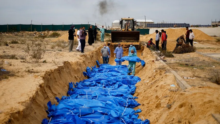 ونقلت رفات الشهداء الذي ارتقوا خلال الحرب إلى مستشفى غزة الأوروبي.