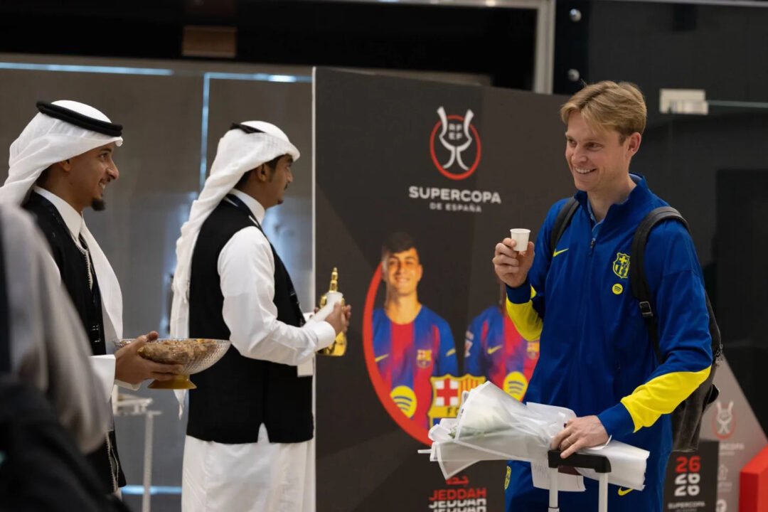 وصلت بعثة نادي برشلونة إلى مدينة جدة عند الساعة الثامنة مساءً بتوقيت مكة المكرمة، حيث تقدمها أبرز نجوم الفريق لامين يامال وبيدري وليفاندوفيسكي وبقية النجوم.