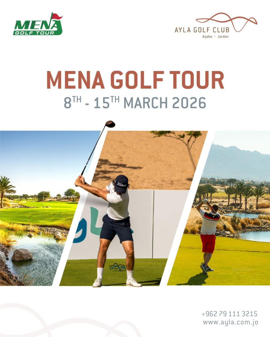 أعلنت شركة واحة أيلة للتطوير عن استضافة منافسات جولة المينا تور للجولف لمنطقة الشرق الأوسط وشمال إفريقيا، والتي ستقام على ملاعب أيلة للجولف في العقبة مجدداً خلال الفترة من 8 إلى 15 آذار 2026، وذلك ضمن روزنامة فعاليات 2026 مع سلطة منطقة العقبة الاقتصادية الخاصة. وتؤكد هذه الاستضافة المتجددة مكانة العقبة كوجهة رائدة لرياضة الجولف والفعاليات الرياضية الدولية، وتعكس ثقة منظمي البطولة بالبنية التحتية الرياضية والسياحية في الأردن.