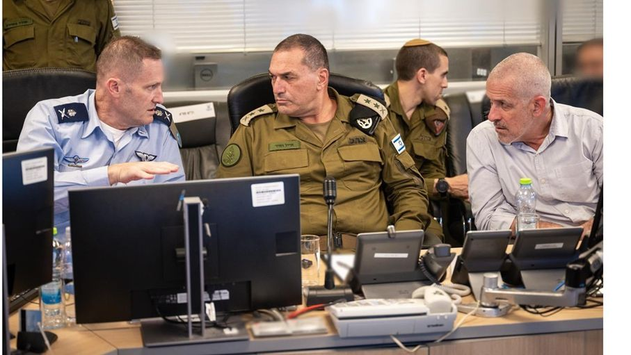 ونشر الجيش صورًا لرئيس الأركان أيال زامير، ورئيس جهاز الأمن العام (الشاباك) رونين بار، وقائد سلاح الجو تومر بار، خلال إشرافهم على “الغارات المكثفة على أهداف حماس الليلة الماضية من غرفة عمليات سلاح الجو”.- وكالات