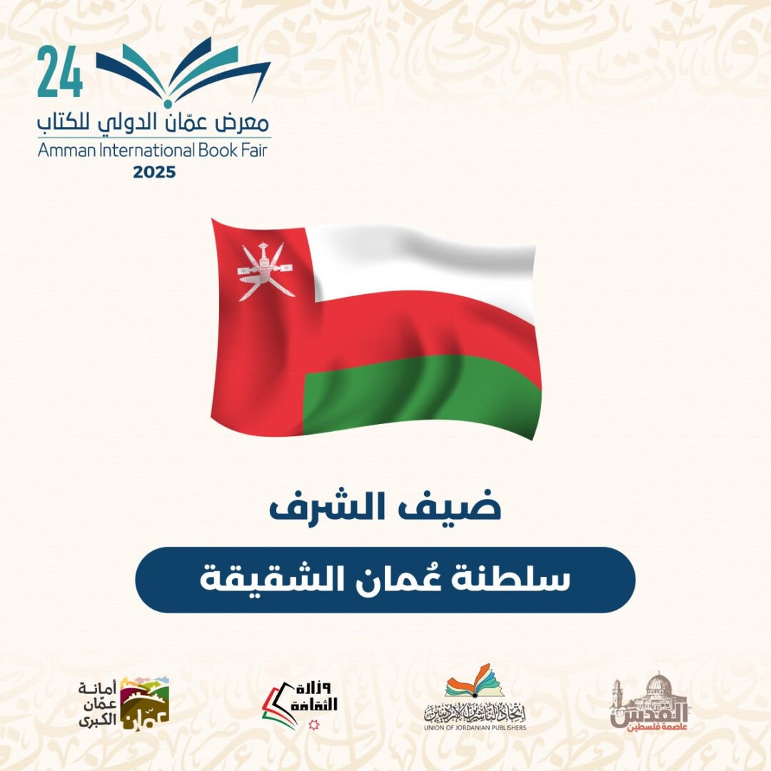 تحلّ سلطنة عُمان ممثلة في وزارة الثقافة والرياضة والشباب ضيف شرف على معرض عمّان الدولي للكتاب في دورته الـ 24 التي تقام بالعاصمة الأردنية عمّان خلال الفترة من 25 سبتمبر الجاري وحتى 5 أكتوبر القادم، في المركز الاردني للمعارض الدولية – مكة مول.