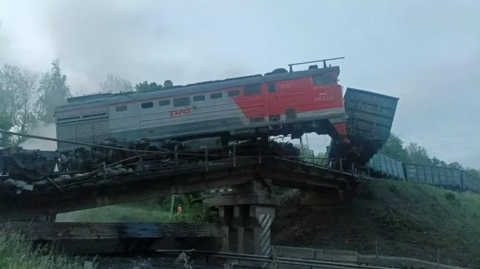 وفقًا لـ”بترينكو”: “في منطقة زيليزنوجورسك بمقاطعة كورسك في 1 يونيو، نحو الساعة 3 صباحًا، تم تفجير جسر للسكك الحديدية أيضًا، ما تسبب في سقوط قطار عابر على طريق سريع.. ونتيجة لهذا الحادث، أُصيب السائق واثنان من مساعديه”.