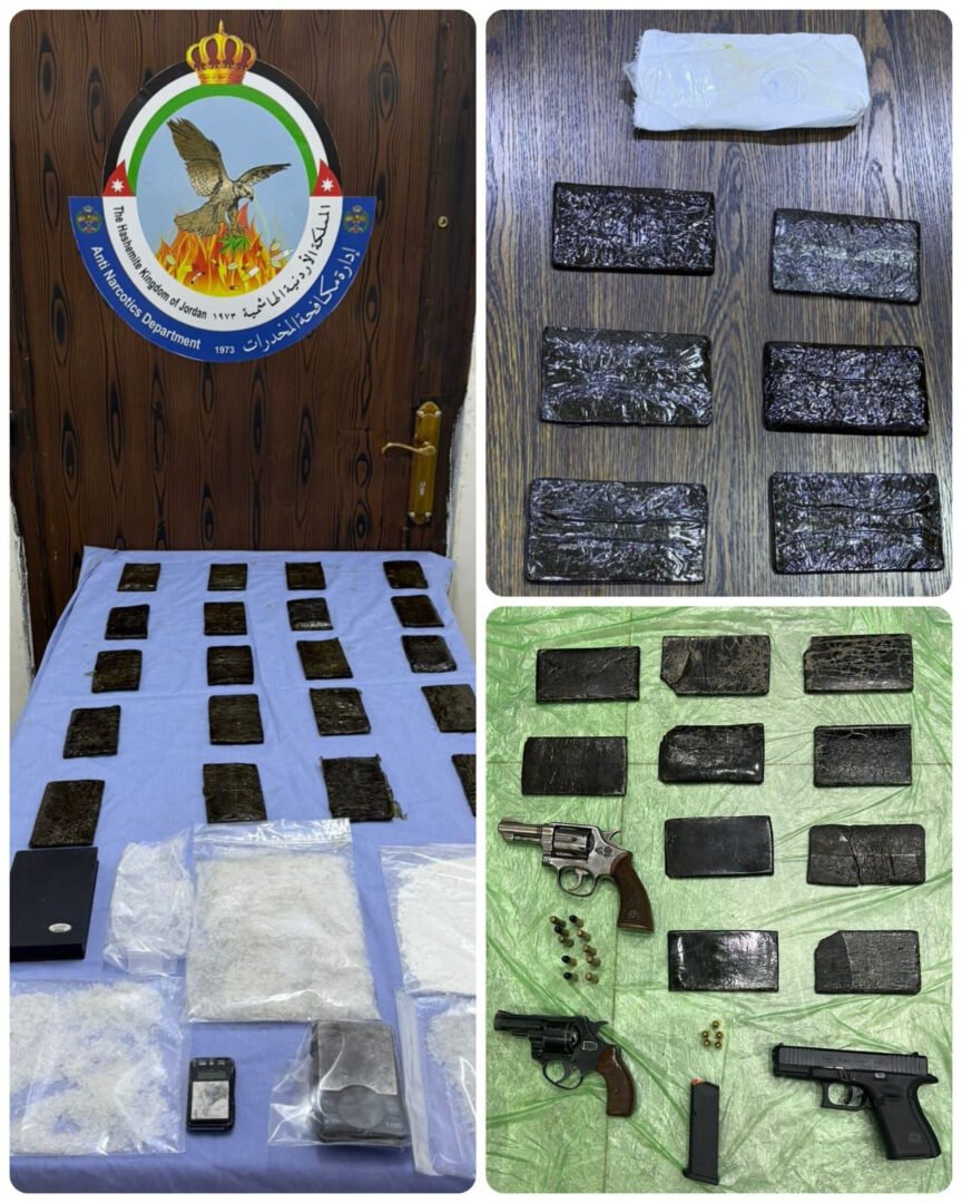 وفي القضية الثانية في محافظة مأدبا تابع العاملون في الإدارة معلومات حول شخصين وارتباطهما بعصابات إقليمية لتهريب المخدرات وحيازتهما نتيجة ذلك لكميات كبيرة من المواد المخدرة، حيث جرى بعد التأكد من كافّة المعلومات إلقاء القبض عليهما بعد مداهمتهما وضُبط بحوزتهما 50 كف حشيش ونصف كغم من مادة الكوكايين .