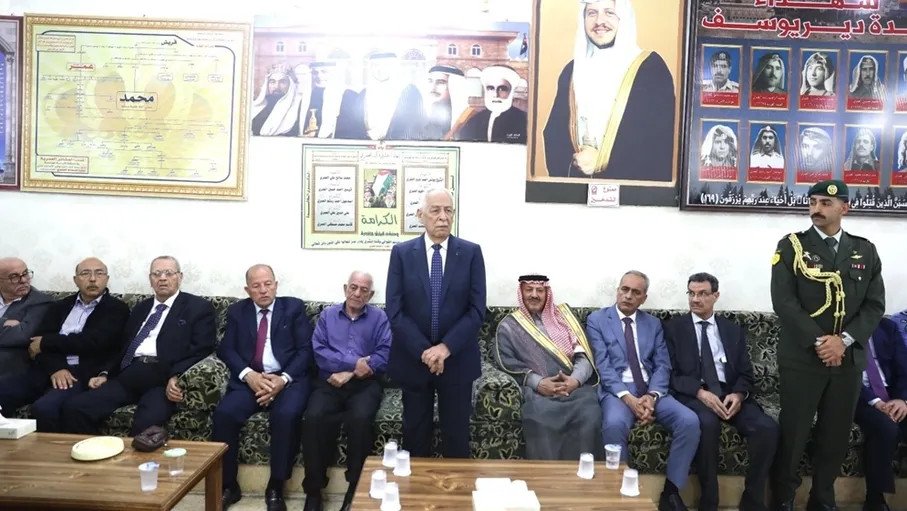 ونقل العيسوي، خلال زيارته بيت عزاء المرحوم في منطقة دير يوسف بلواء المزار الشمالي بمحافظة إربد، تعازي ومواساة جلالة الملك وسمو ولي العهد، إلى ذوي الفقيد وعموم عشيرة العمري، سائلا المولى عز وجل أن يتغمده بواسع رحمته.