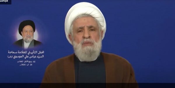 وقال قاسم في كلمة له مساء اليوم الإثنين، إنّ الحكومة اللبنانية اتخذت خطيئة بتجريد المقاومة من السلاح أثناء العدوان الإسرائيلي