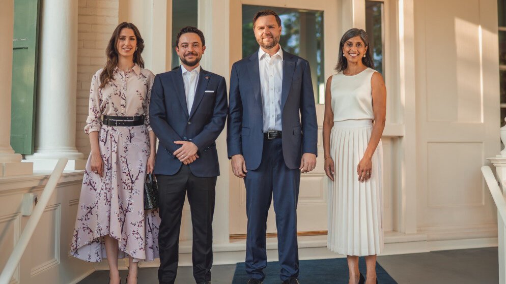 حضر سموّ الأمير الحسين بن عبدﷲ الثاني، ولي العهد، وسمو الأميرة رجوة الحسين، الخميس، مأدبة عشاء أقامها نائب الرئيس الأميركي جيه دي فانس وزوجته أوشا فانس، في واشنطن بمناسبة زيارة سموهما للولايات المتحدة.